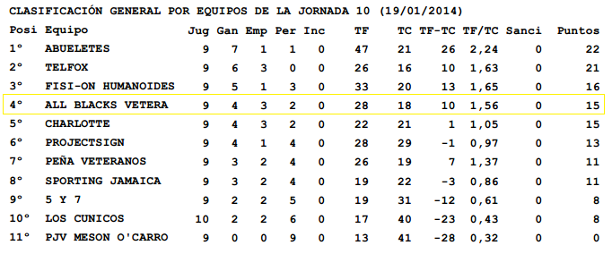 Y aquí tenemos la clasificación. Empezamos a estar lejos de los 2 primeros (a 6 puntos), pero seguimos en puestos de champions.