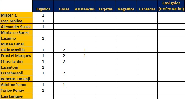 Ausencia no sólo de Cabal sino también de Marianco Baresi, Luis Enrique y Beberto Jumanji. ¡¡En fin chicos; el próximo partido todos ahí!!