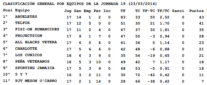 9 Mar. Allblacks 3 - Peña veteranos 1
