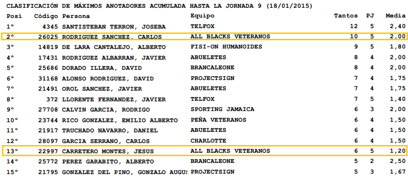 (le faltan 2 goles a Carlos. A saber a quién se los ha apuntado el árbitro)